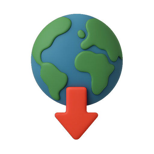 /Collection: /by davooda/Type: PNG/A stylized 3D icon representing the Earth with a downward arrow, suitable for applications related to downloads or global resources. The design features vibrant colors and a playful aesthetic, making it appealing for digital platforms.