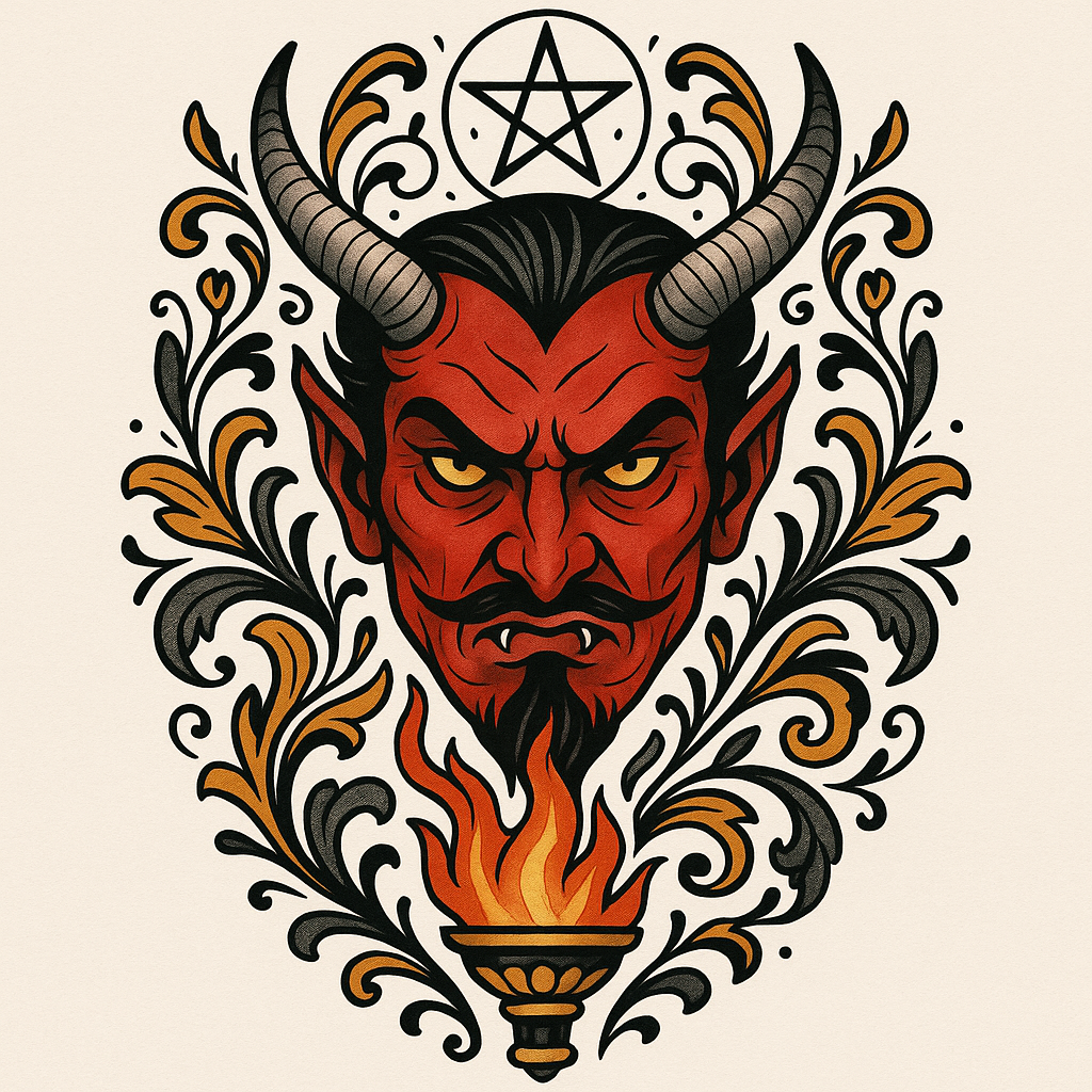Dramatic Illustration of The Devil in Bold Design