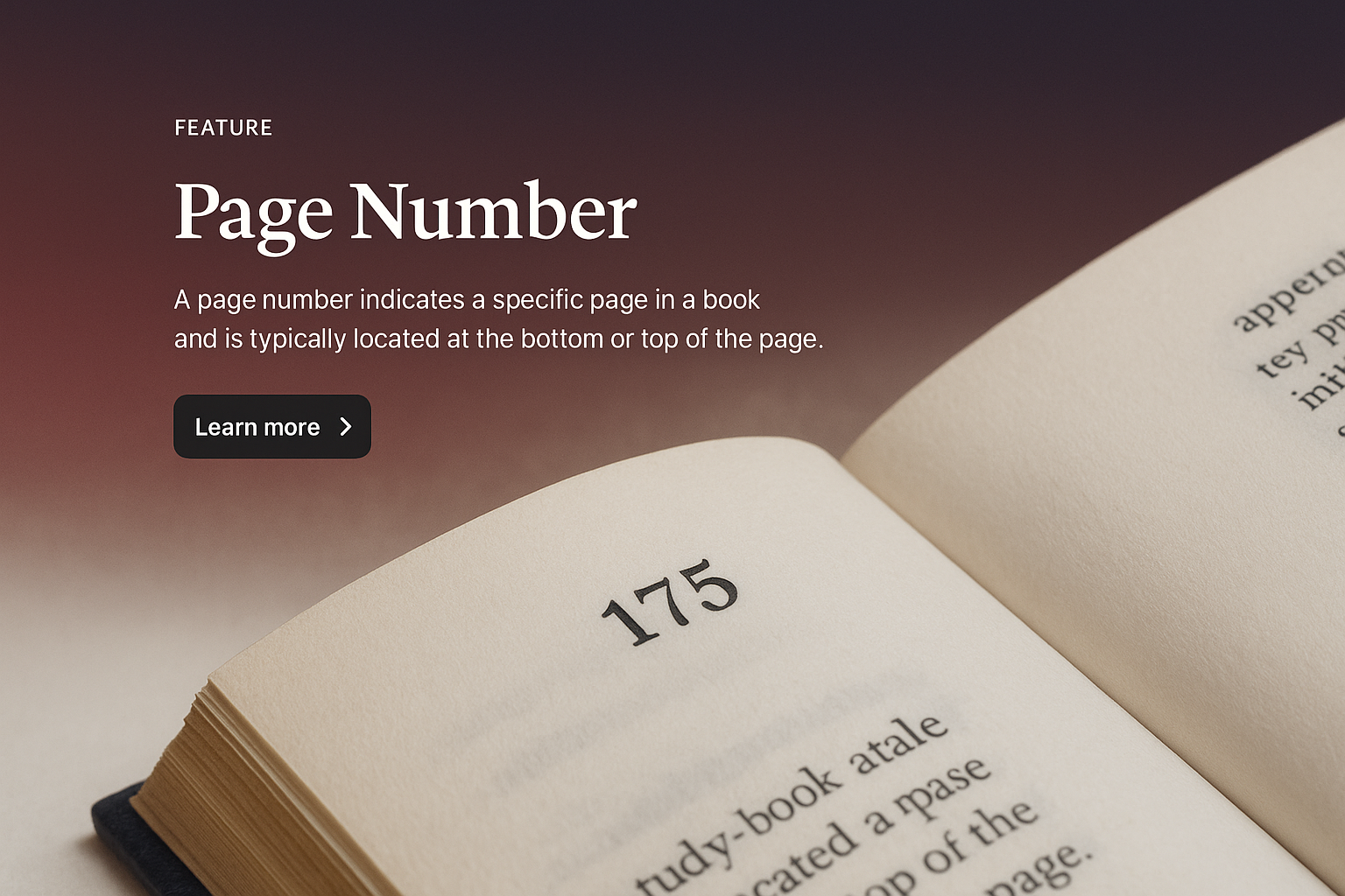 A stylish web page design featuring a close-up of an open book displaying the page number. The background has a gradient transition, enhancing readability.