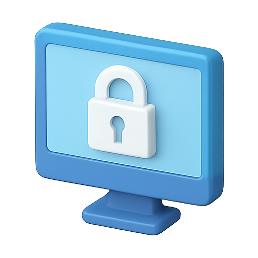 /Collection: /by davooda/Type: PNG/A modern 3D illustration of a computer monitor featuring a padlock symbol, representing digital security. Ideal for tech-related content, web design, or cybersecurity themes.