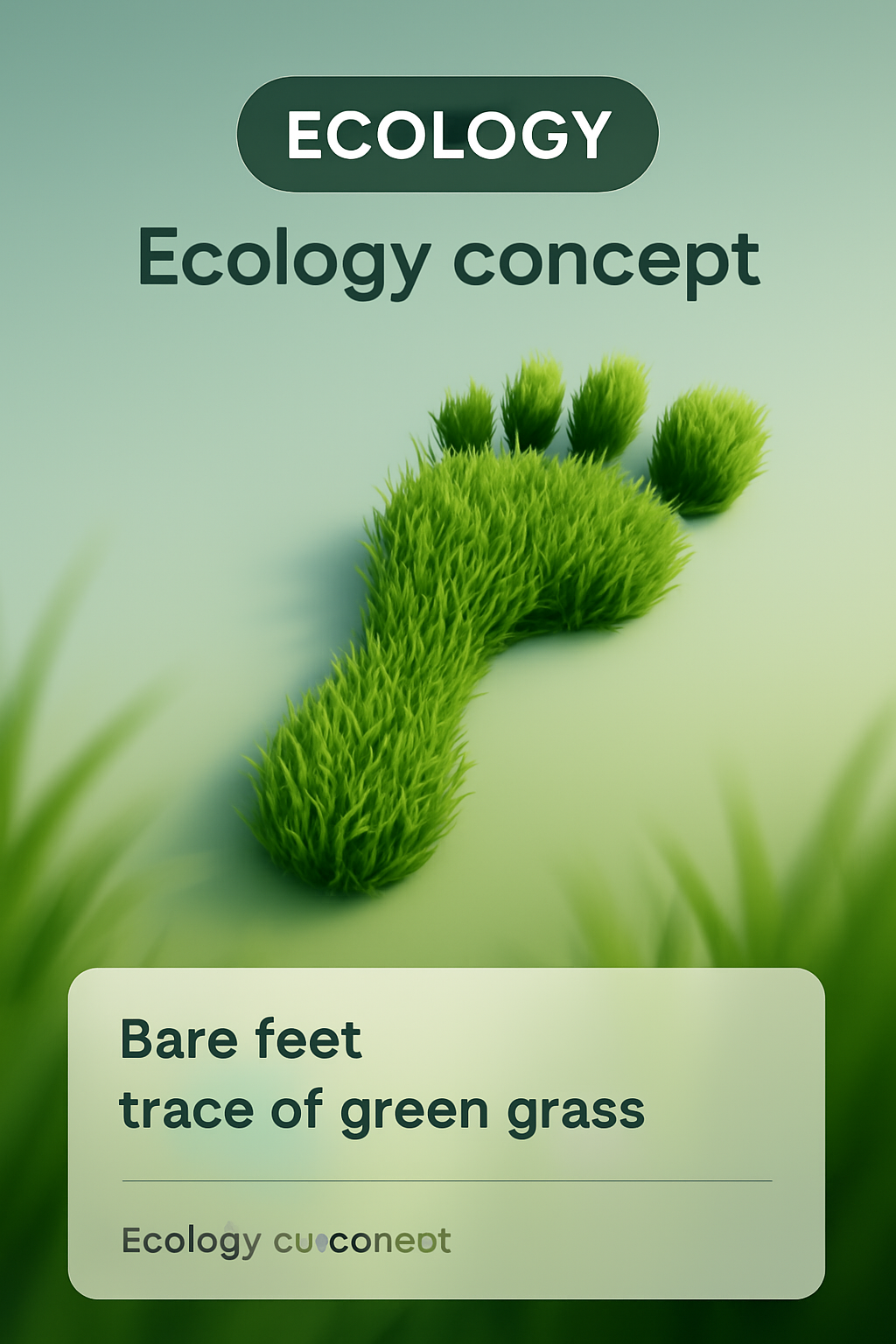 This digital graphic features a stylized footprint made of grass, symbolizing ecology and nature. It's suitable for environmental campaigns or educational content.