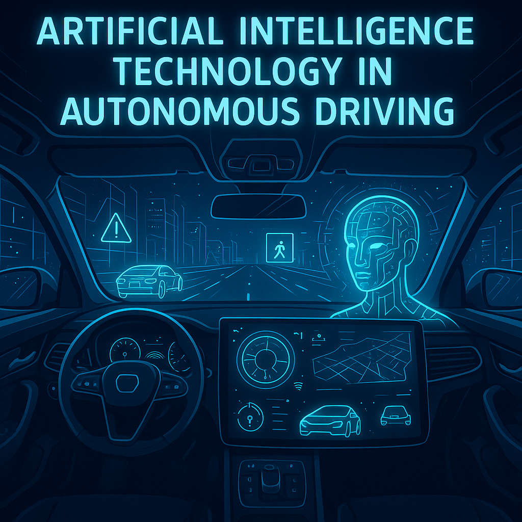 /Collection: /by davooda/Type: PNG/A digital illustration showcasing the integration of artificial intelligence in autonomous driving. The interior of a car is depicted with a futuristic design, highlighting AI technology and smart interfaces.