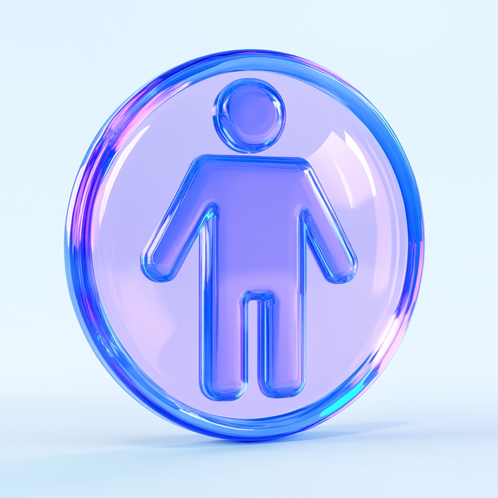 3D Glassy Icon of a Person in a Circular Emblem