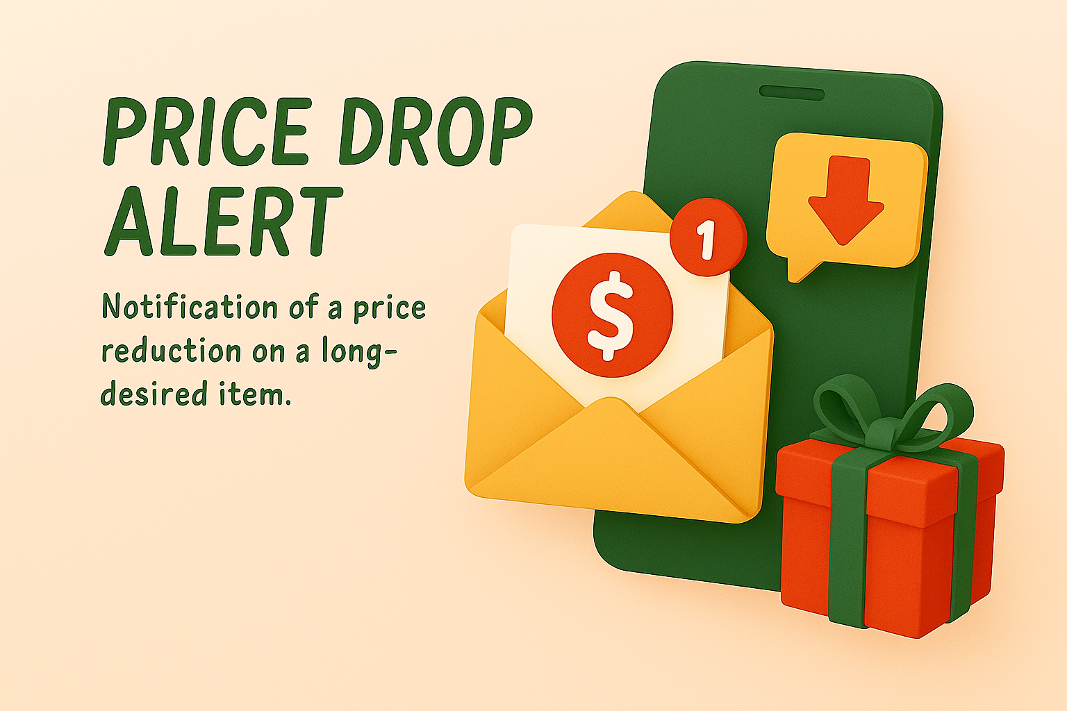 3D Illustration of Price Drop Alert Notification Concept