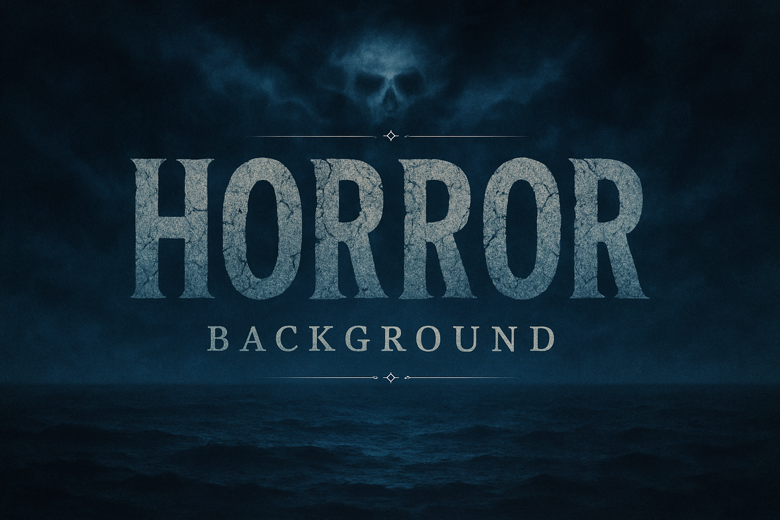 Eerie horror-themed background graphic featuring dark tones and a ghostly skull, ideal for use in movie posters, book covers, or Halloween promotions.