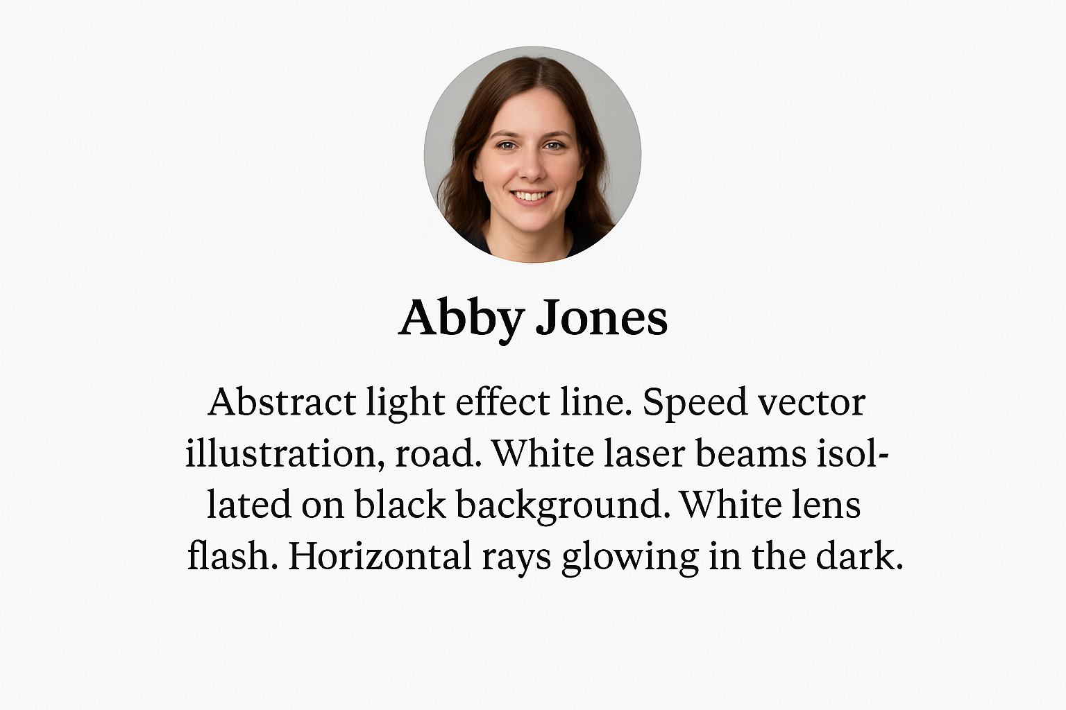 This design features a large testimonial block with a circular photo, name, and testimonial text, set against a clean, gradient background for clarity.