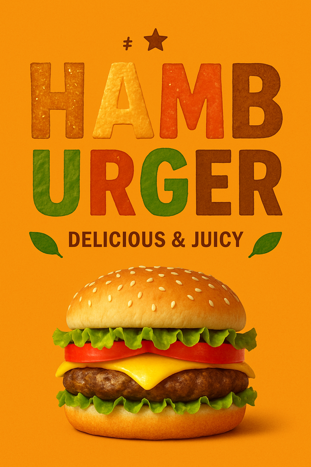 /Collection: /by davooda/Type: PNG/A vibrant and playful illustration of a hamburger featuring bold typography. Ideal for food-related marketing, restaurant promotions, or culinary social media content.