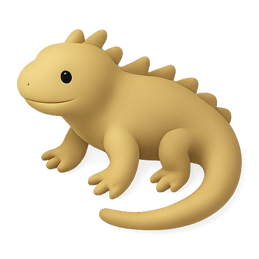 3D cartoon-style lizard character with a simplistic design, featuring a cheerful expression and rounded shapes. Ideal for children's media, animation projects, and playful branding.