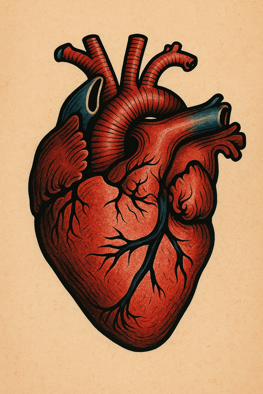 /Collection: /by davooda/Type: PNG/This image features a highly detailed and artistic illustration of a human heart, showcasing intricate anatomical features. It is suitable for educational, medical, or artistic contexts.