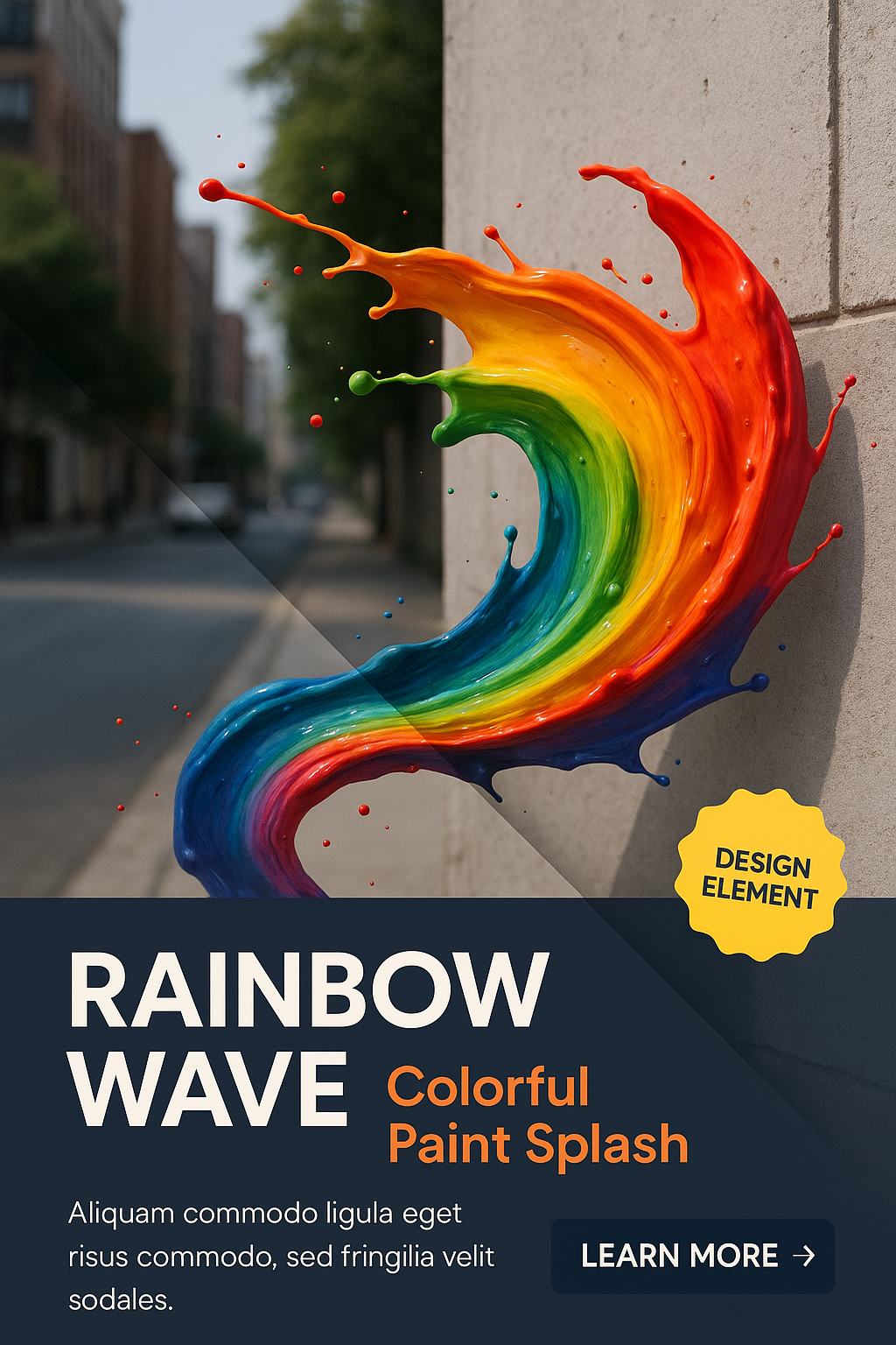 Dynamic Rainbow Wave Paint Splash Advertising Design