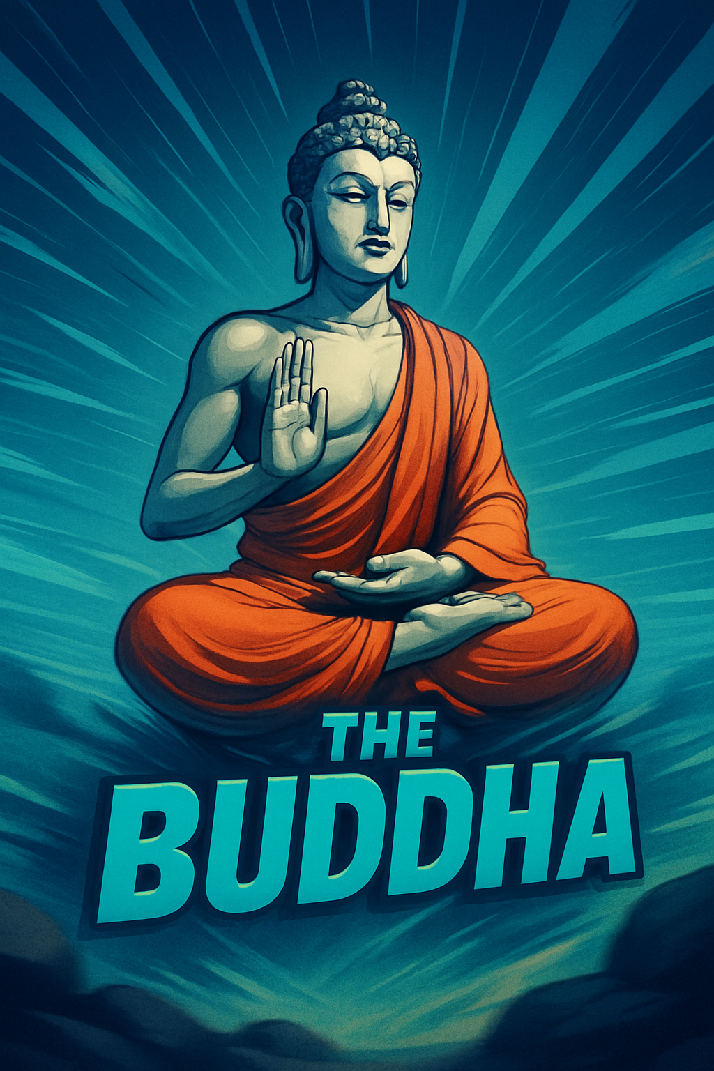 /Collection: /by davooda/Type: PNG/This is a vibrant illustration featuring the Buddha in a meditative pose, ideal for spiritual or wellness-themed projects. The graphic style uses bold colors and dynamic lighting.