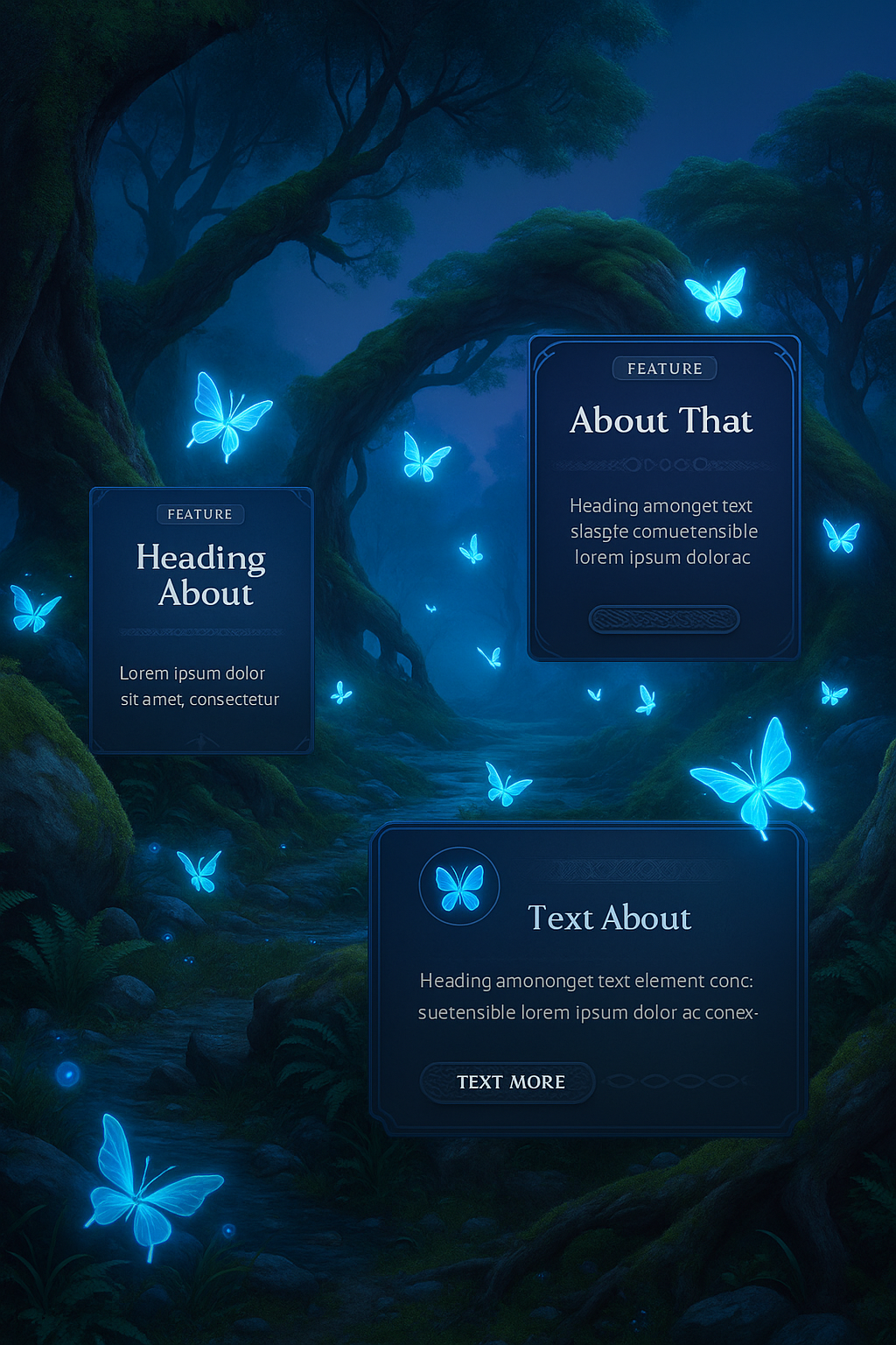 /Collection: /by davooda/Type: PNG/A mesmerizing panoramic view of a fantasy forest filled with glowing butterflies. The scene blends ethereal beauty with dynamic 3D elements, creating a magical atmosphere.
