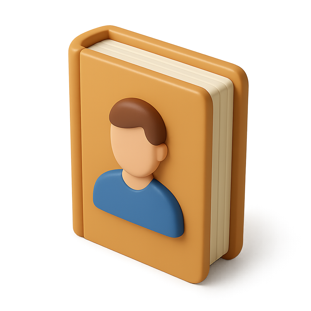/Collection: /by davooda/Type: PNG/A vibrant 3D icon depicting a book with a minimalist design, featuring a person symbol on the cover. The isometric view enhances its volumetric effect, set against a soft background.