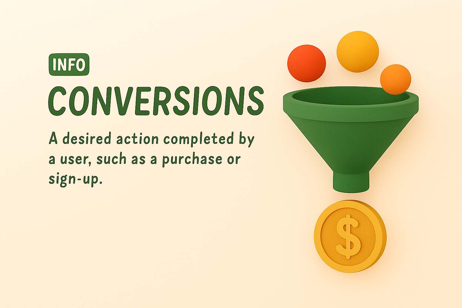 A visually appealing 3D illustration depicting a conversion funnel with colorful elements, ideal for marketing and educational content about user actions.