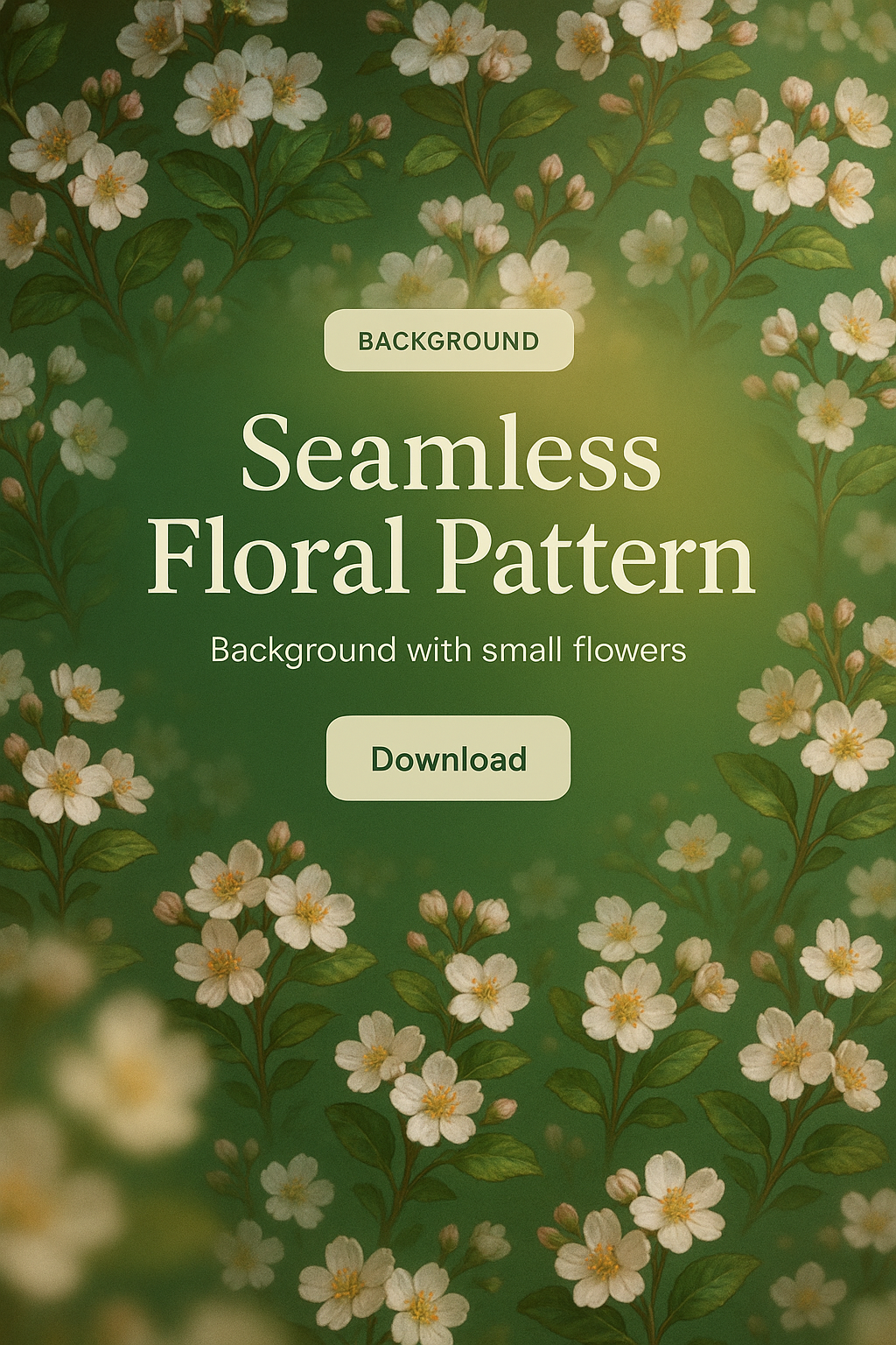 A seamless floral pattern graphic featuring small flowers on a green background. Ideal for digital or print design projects, this image caters to creatives looking for nature-inspired textures.