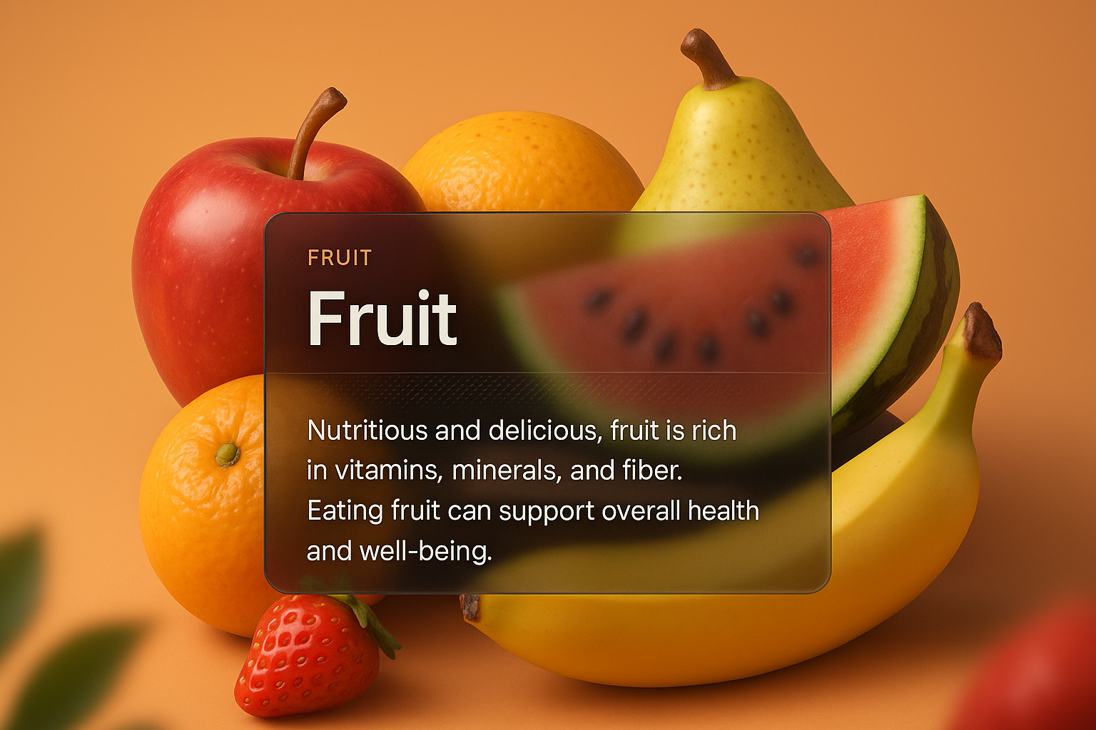 Vibrant 3D Fruit Illustration with Informative Overlay