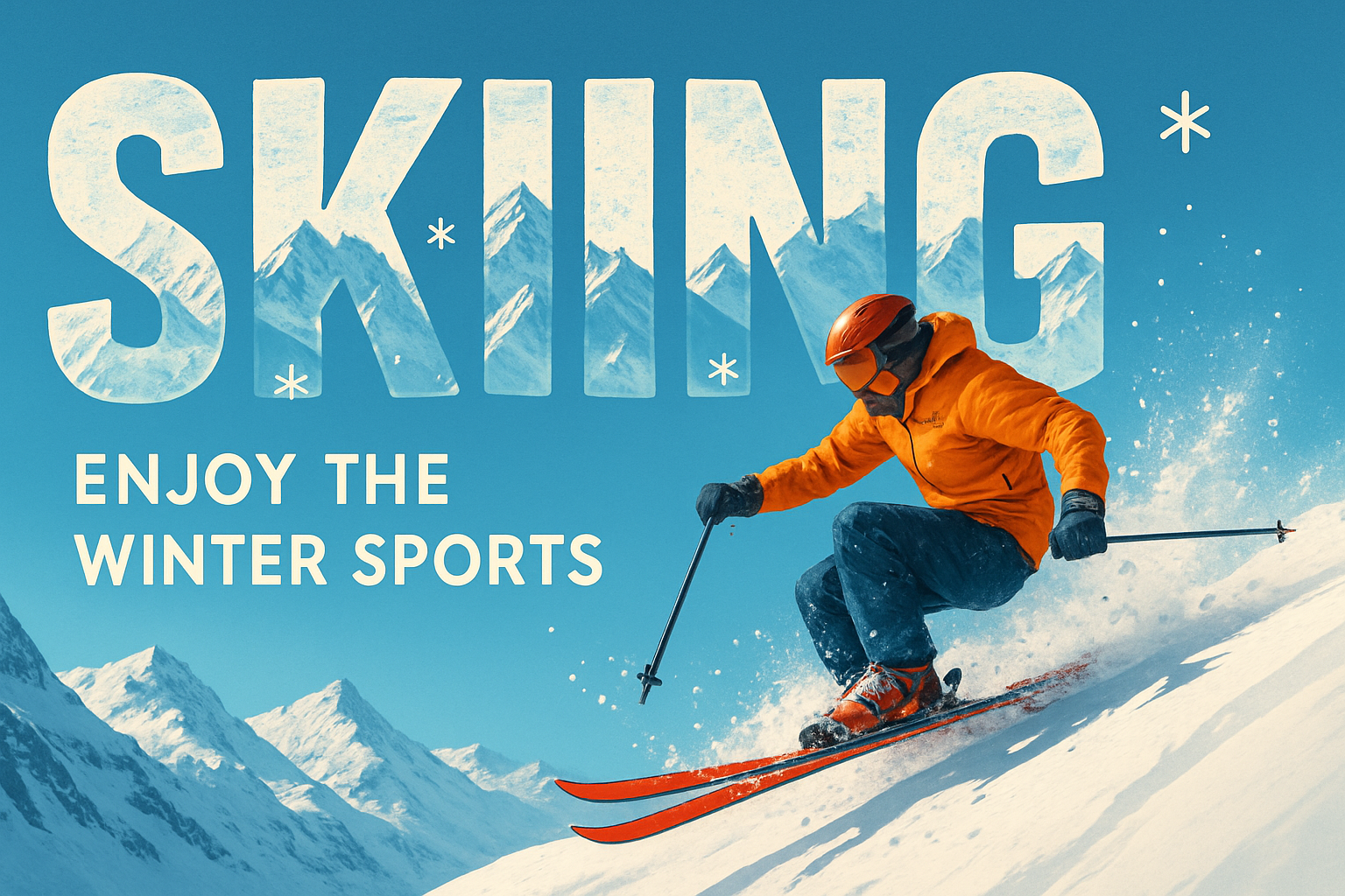 Vintage Skiing Illustration with Bold Typography