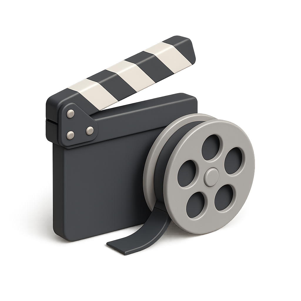 Stylized 3D Movie Icon with Film Reel and Clapperboard