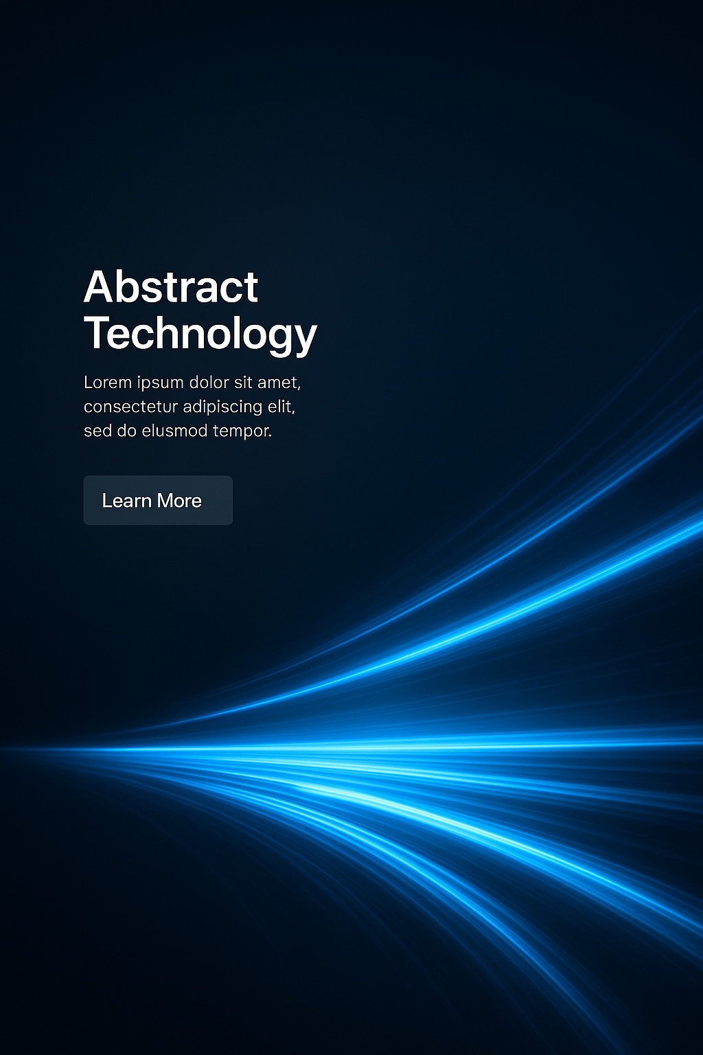 /Collection: /by davooda/Type: PNG/A visually striking modern abstract background featuring a blend of black and blue tones, with glowing blue light effects symbolizing high-speed technology. The design includes text elements and a call-to-action button.