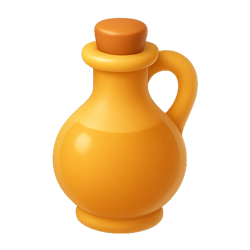 A vibrant, stylized orange bottle designed to resemble an oil container, featuring smooth curves and a playful aesthetic. Ideal for culinary-themed graphics or product presentations.