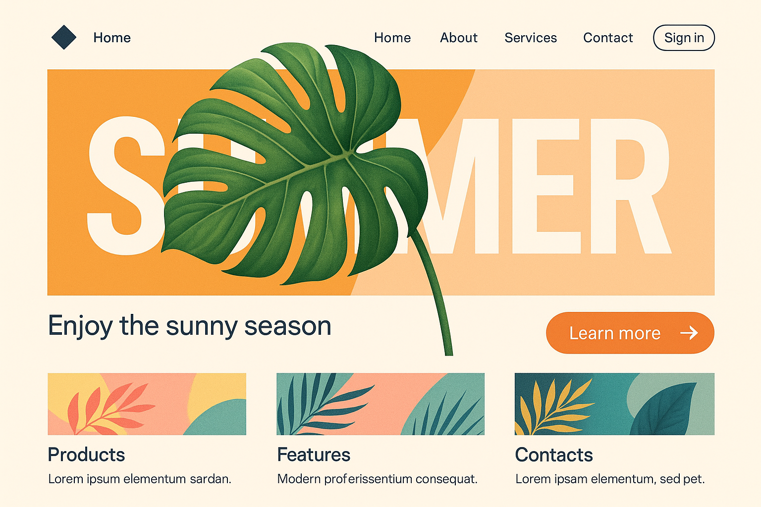 Summer-themed Landing Page Design with Geometric Elements