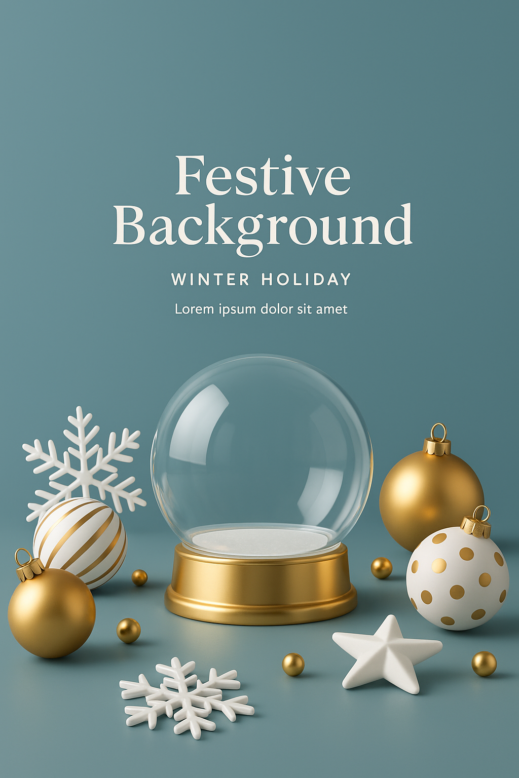 Stylish festive background featuring a snow globe and holiday ornaments, perfect for seasonal promotions and marketing materials.