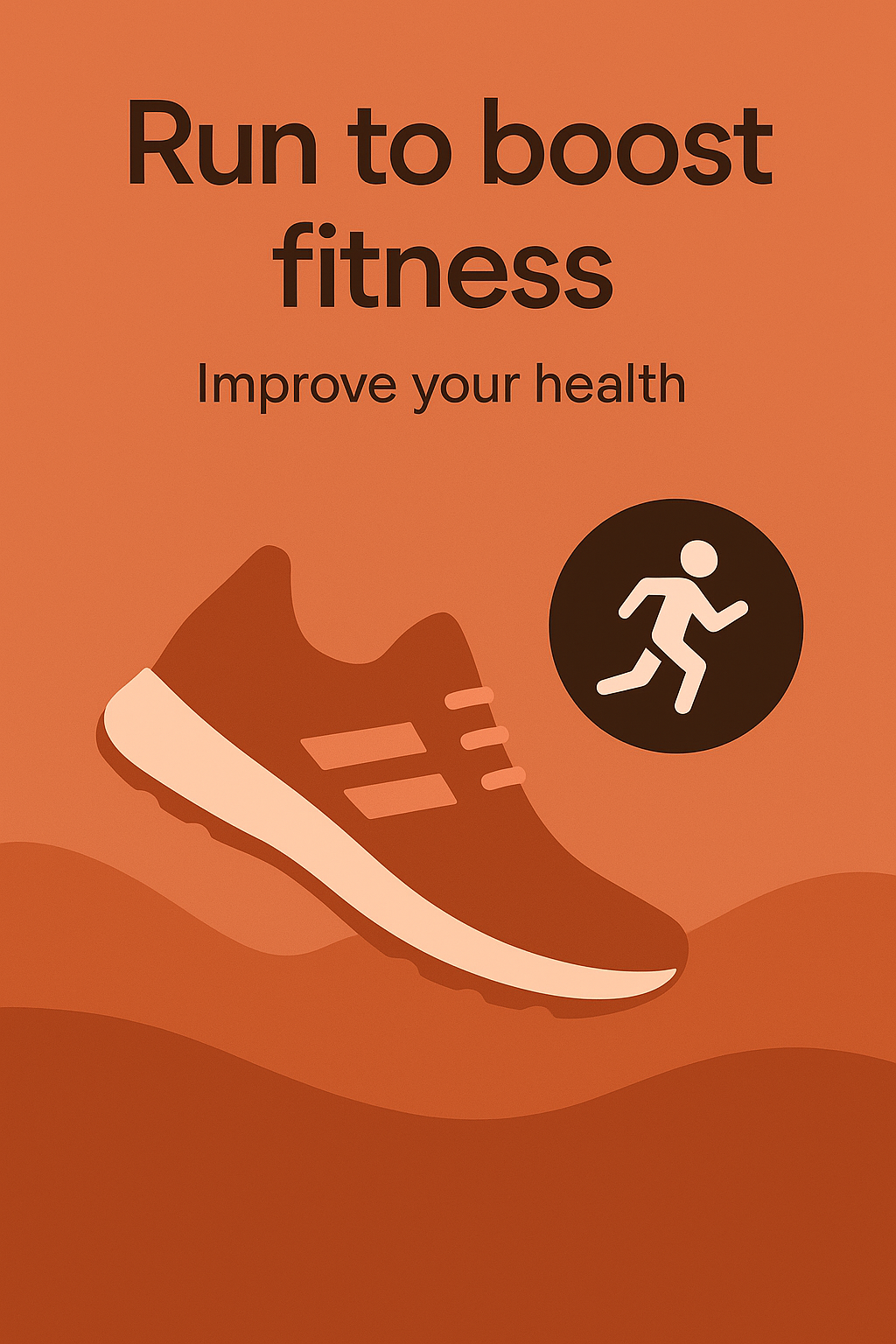 Minimalist promotional graphic featuring a running shoe and an icon depicting a runner. Ideal for health and fitness campaigns aimed at encouraging running for better health.