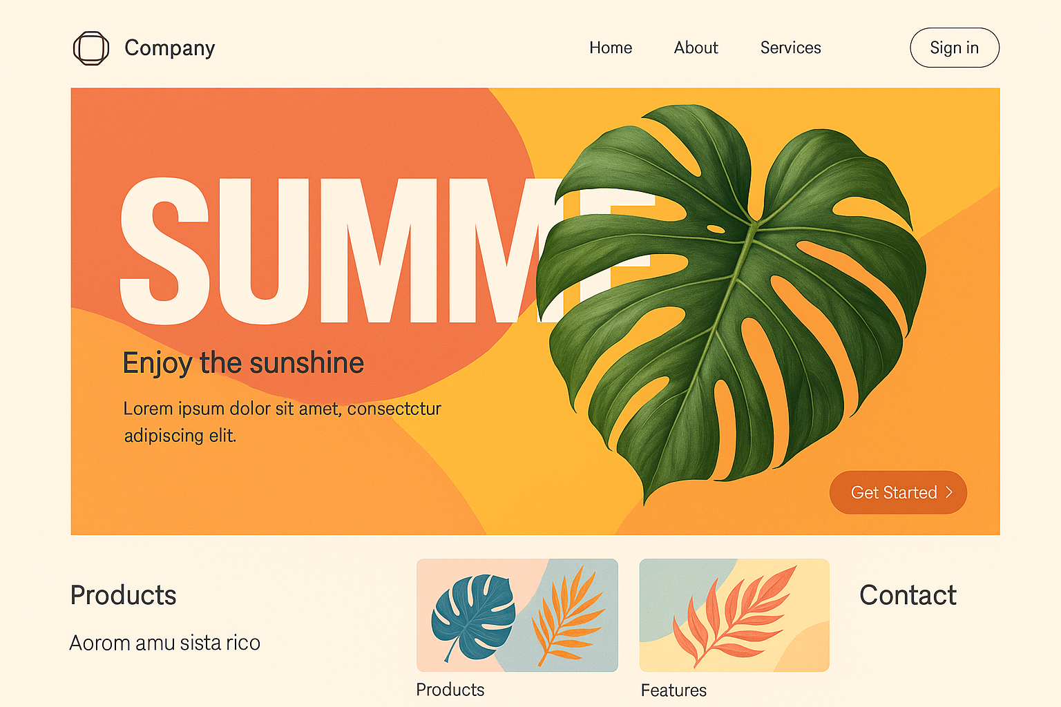 /Collection: /by davooda/Type: PNG/A visually striking summer greeting poster featuring tropical leaves against a colorful abstract background. The design combines bold typography with a modern layout, creating a stylish and inviting atmosphere.