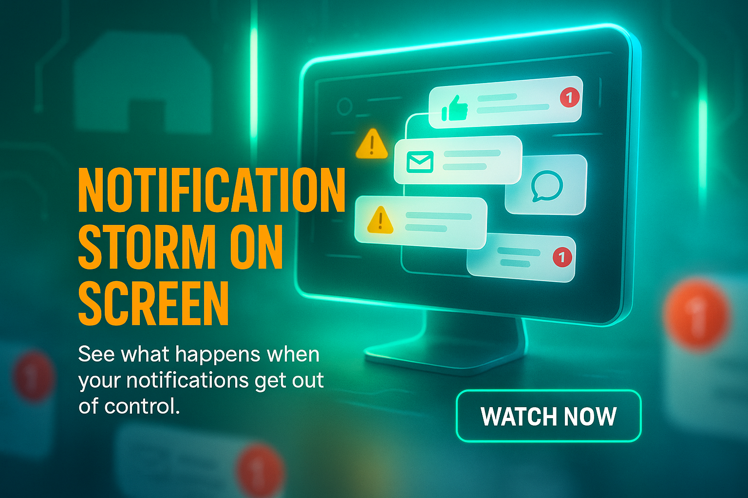 /Collection: /by davooda/Type: PNG/A vibrant digital illustration depicting a computer screen overwhelmed with notifications, highlighting the theme of digital clutter. Ideal for tech-related content or marketing campaigns.