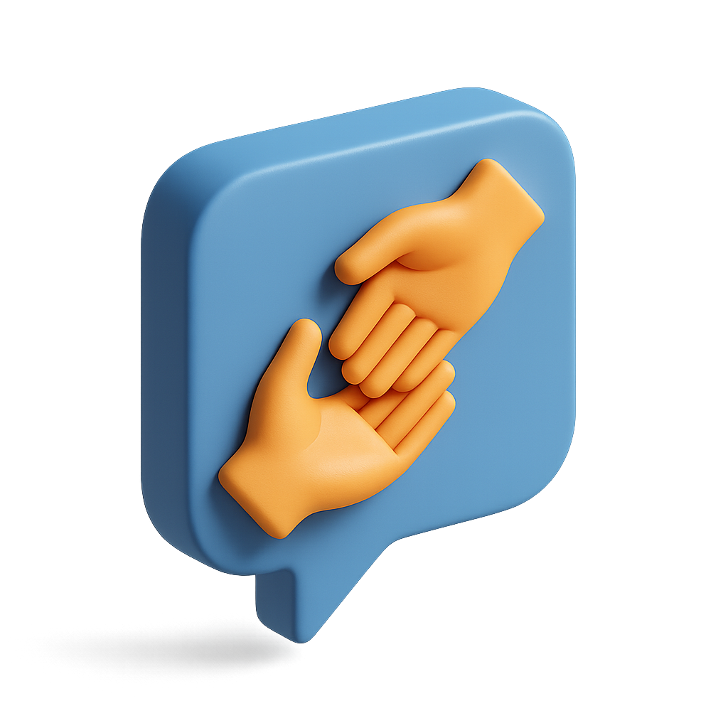 /Collection: /by davooda/Type: PNG/A modern 3D icon featuring two hands reaching out, symbolizing assistance. The icon has a blue background and appears in a three-quarter isometric view, giving it a volumetric feel.