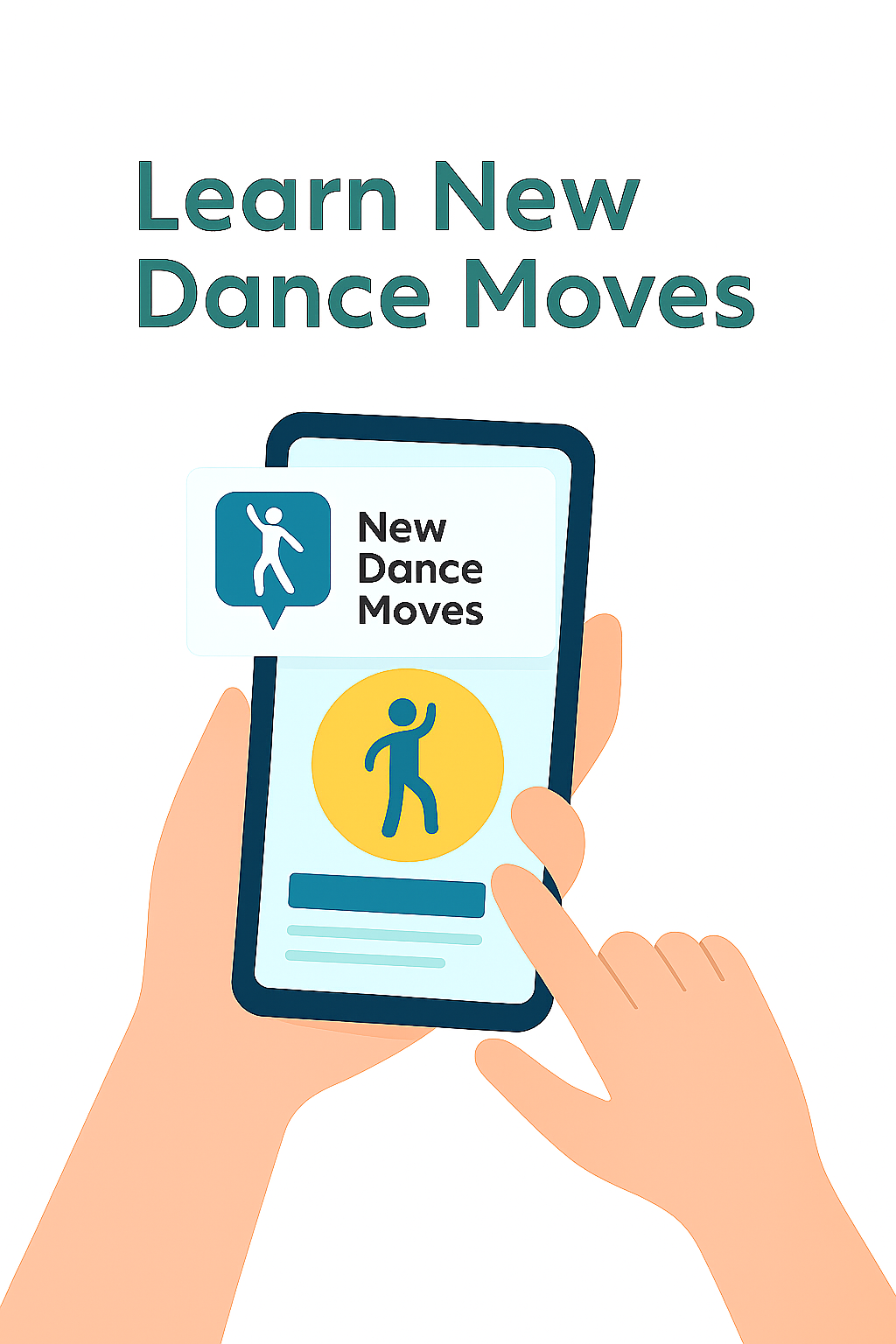 Illustrative graphic showcasing a mobile application interface for learning dance moves. The design features a modern and friendly aesthetic, targeting dance enthusiasts and learners.