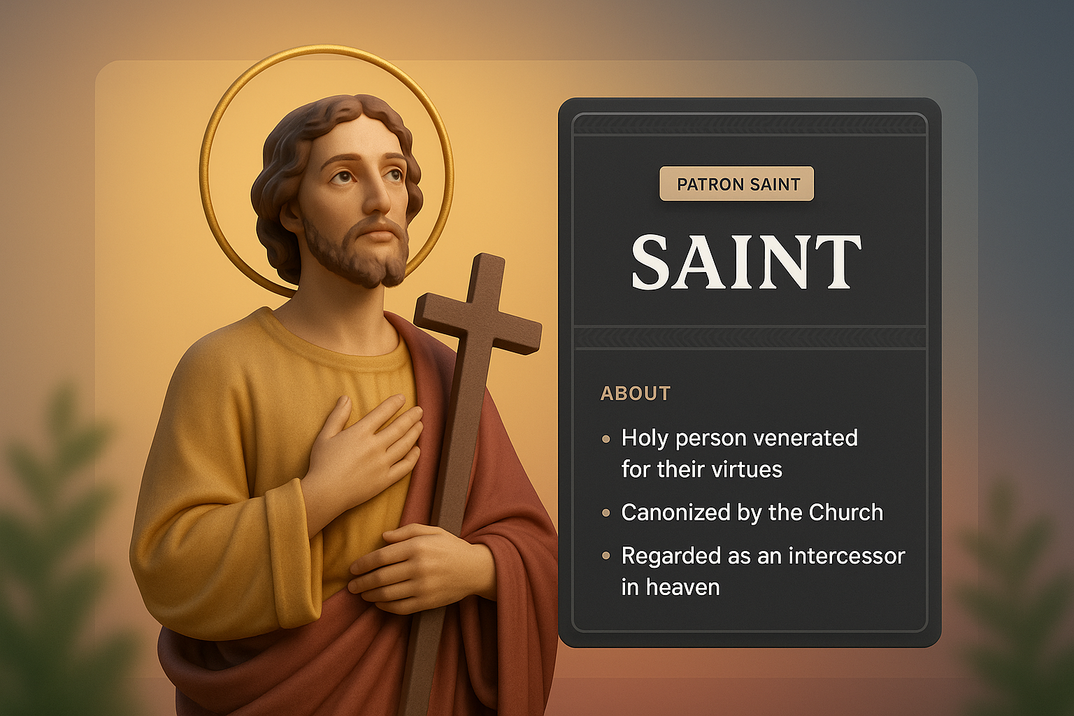 Elegant Web Design Featuring a Saint with 3D Illustration