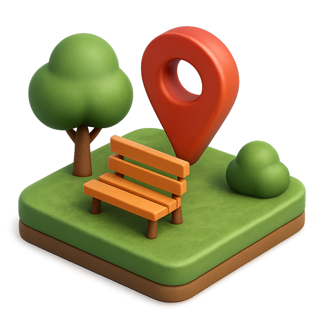 3D Park Icon with Location Pin and Bench