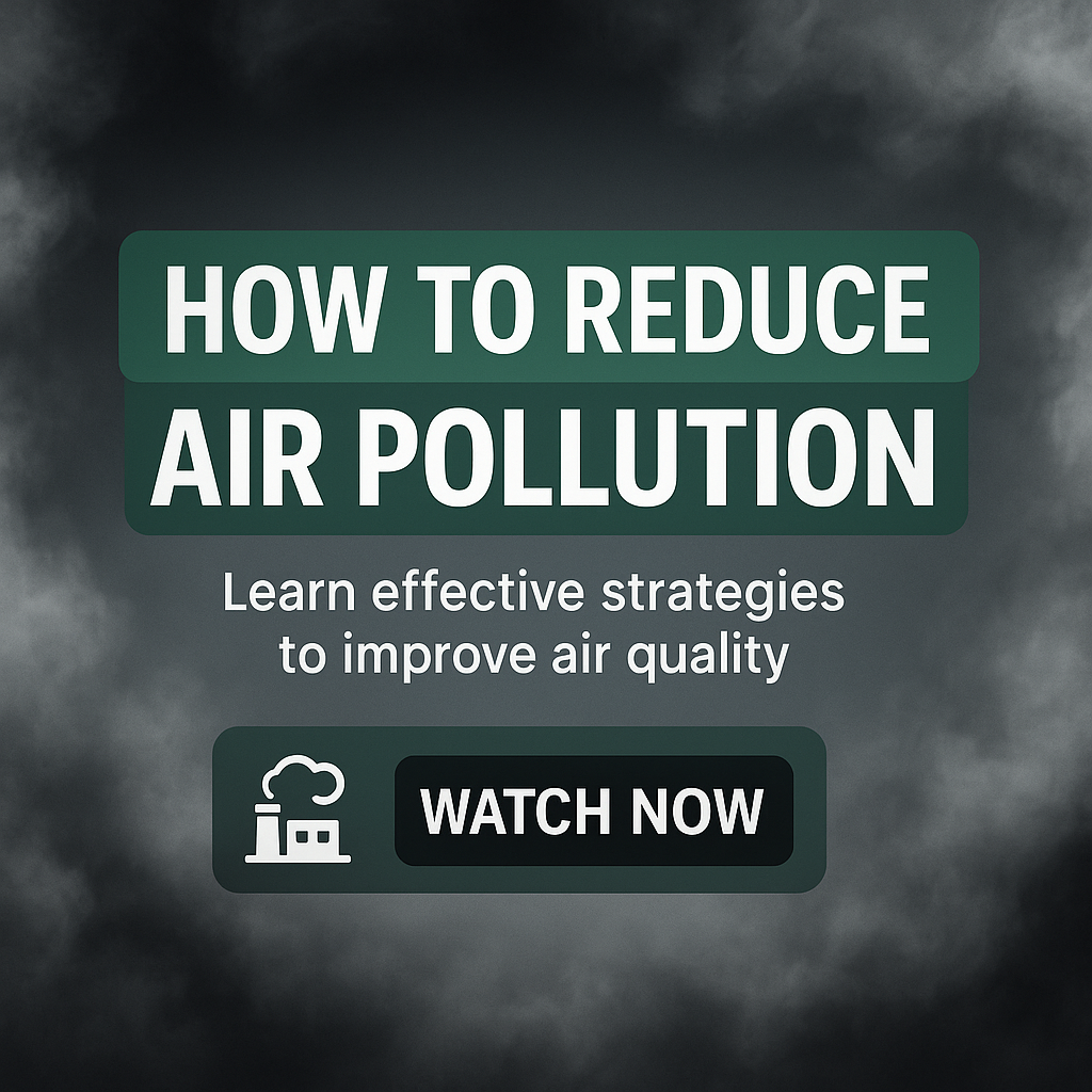 /Collection: /by davooda/Type: PNG/Engaging social media graphic promoting strategies to reduce air pollution, featuring bold typography and a smoky background that emphasizes environmental themes.