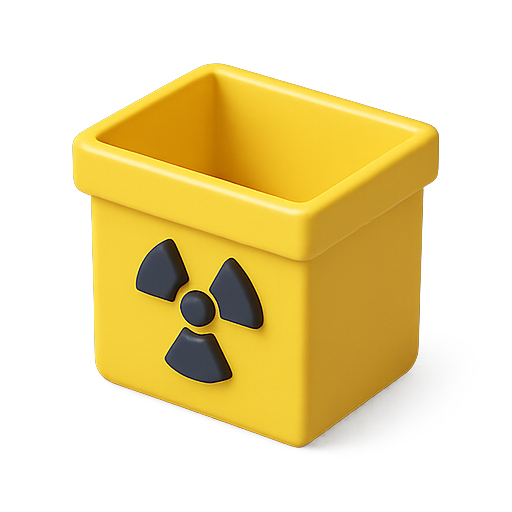 A 3D rendered illustration of a yellow hazardous waste bin featuring a radiation symbol. This design is suitable for environmental awareness campaigns or safety signage.
