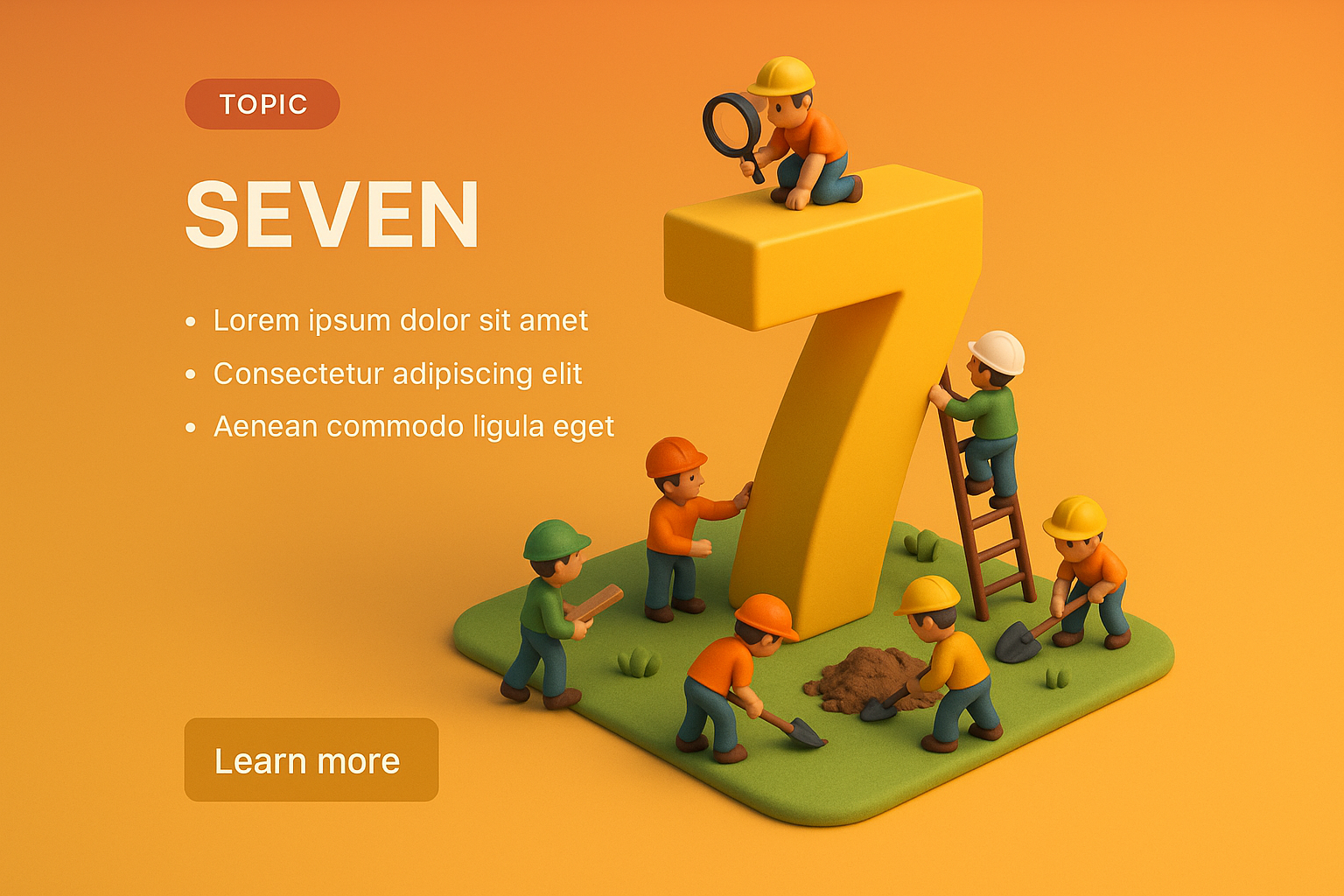 Realistic 3D Scene Featuring the Number Seven with Miniature Characters