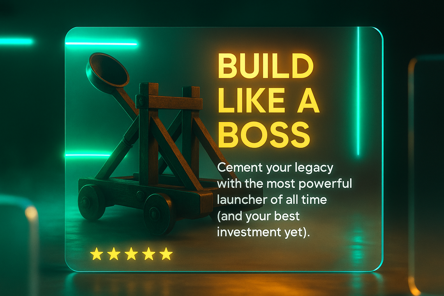 /Collection: /by davooda/Type: PNG/A realistic carousel slide showcasing a neon-themed catapult with glowing accents. The design features bold text and a dynamic layout, creating an engaging advertisement.