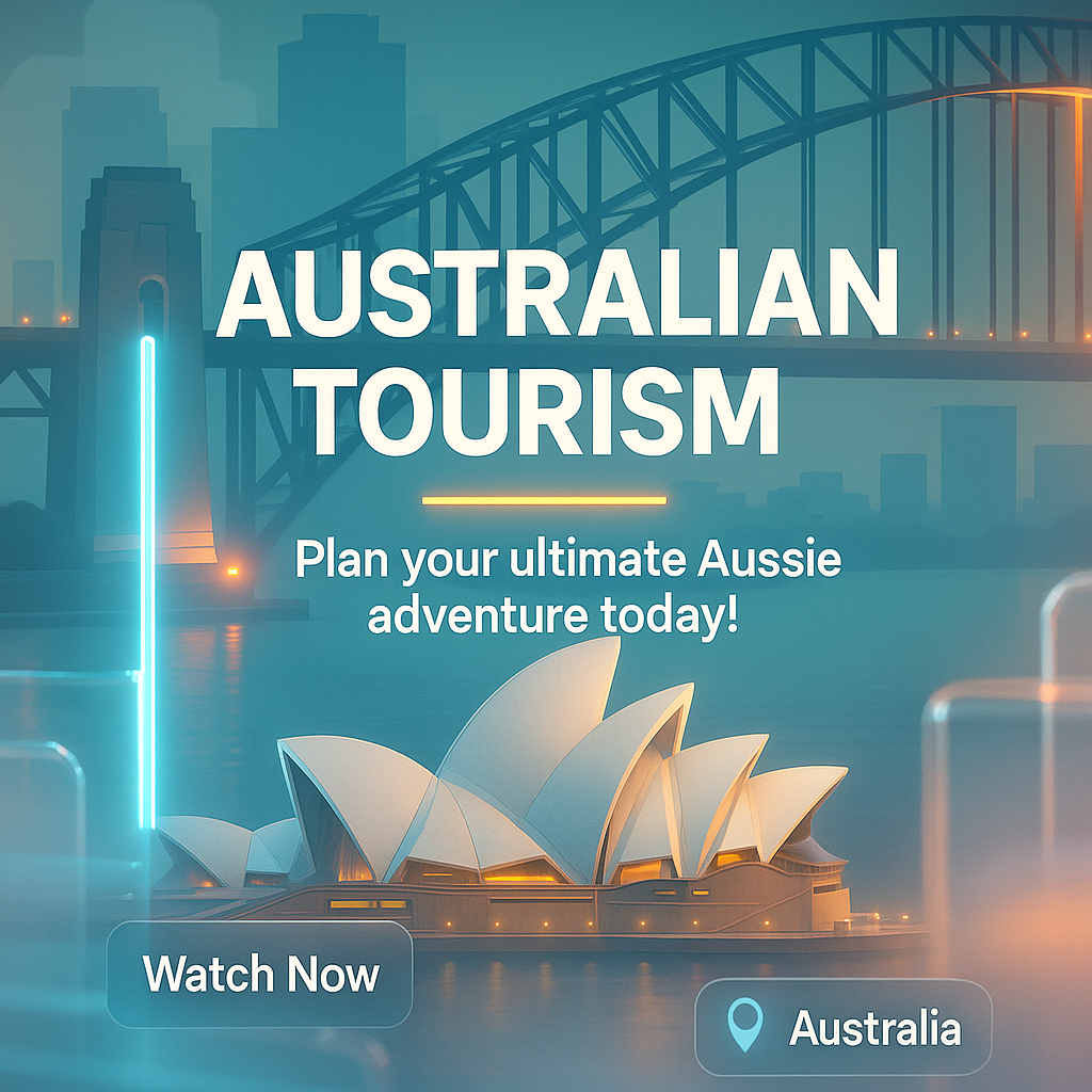 Promotional Graphic for Australian Tourism with Iconic Landmarks