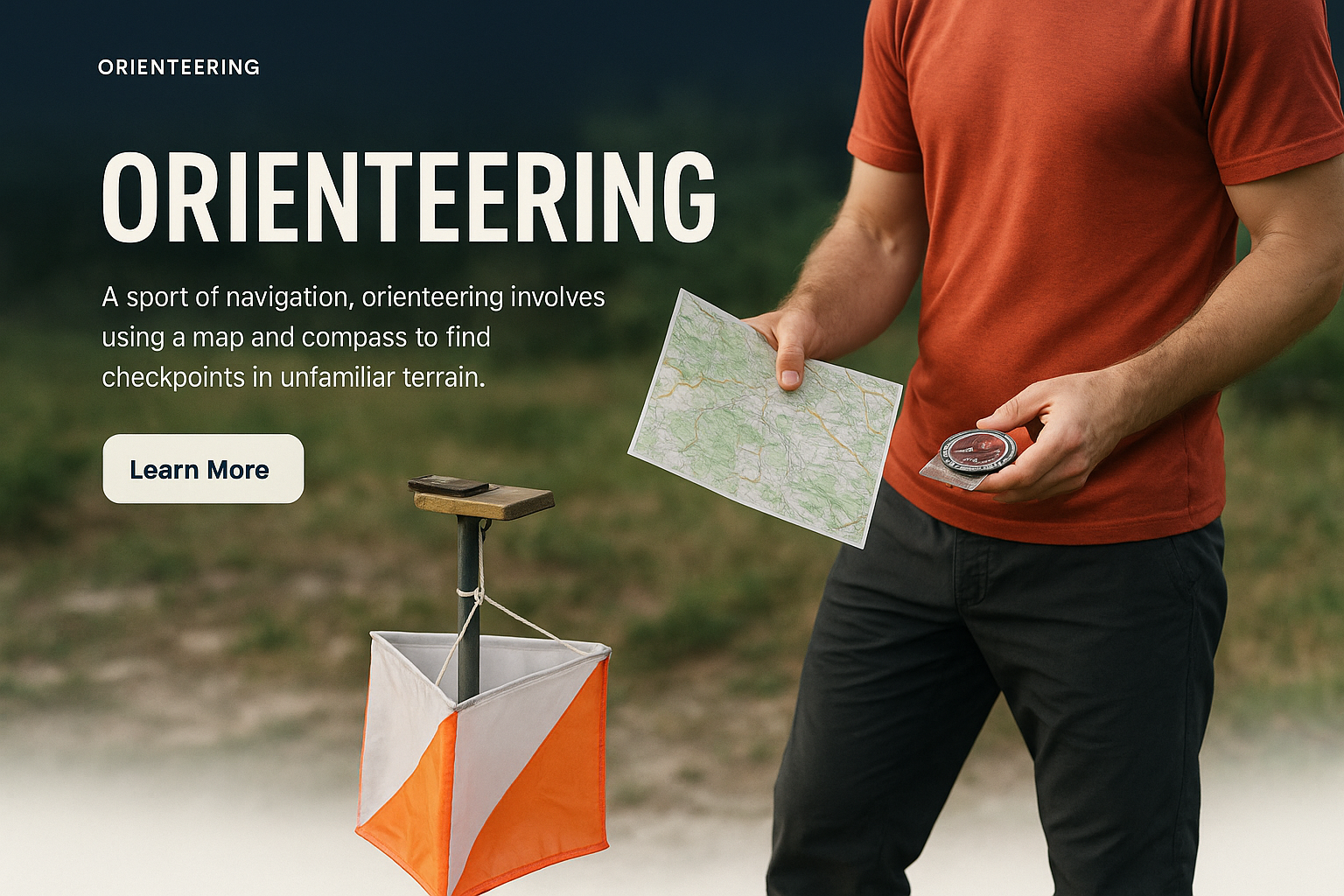 /Collection: /by davooda/Type: PNG/A visually appealing web page design for orienteering, featuring a gradient background, a header, a text block, and an action button. The layout emphasizes readability and realism.