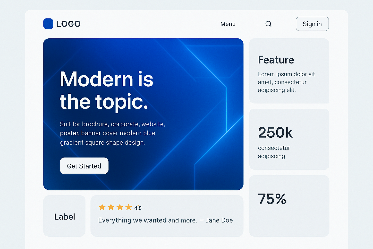 Modern Landing Page Design with Abstract Blue Gradient