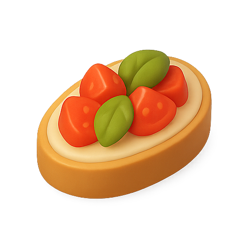 Colorful digital illustration of a gourmet snack featuring a base with cream and vibrant toppings, perfect for food-related branding or menu design.
