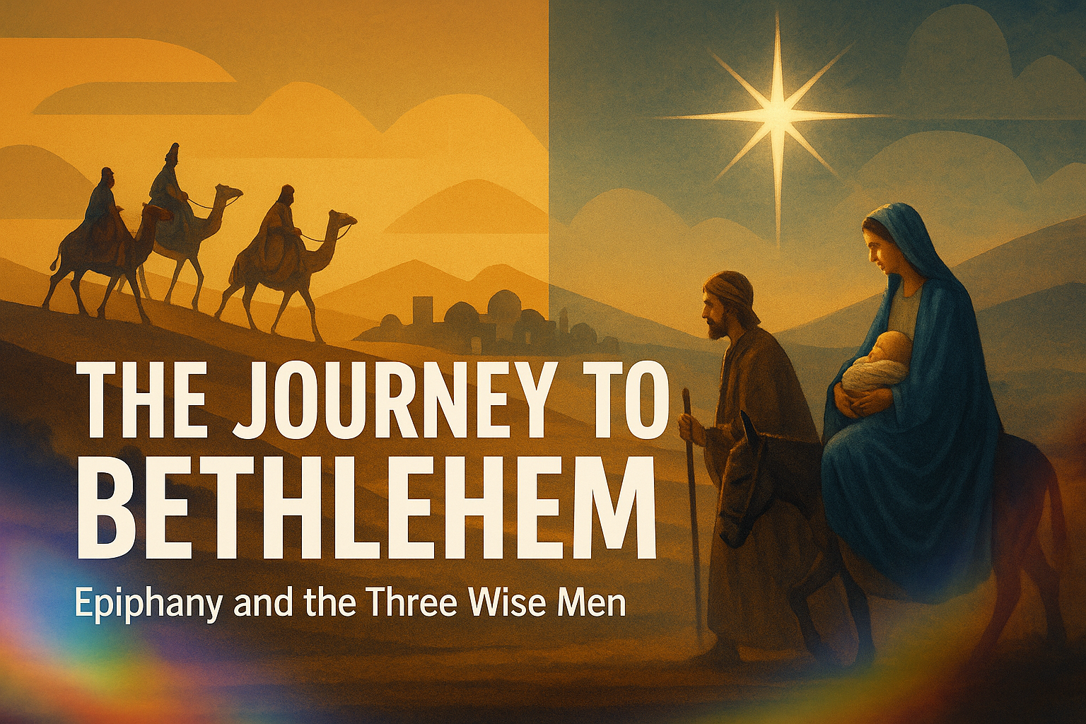 /Collection: /by davooda/Type: PNG/A beautifully illustrated depiction of the biblical journey to Bethlehem featuring the Three Wise Men and Mary. This artwork blends warm colors and a serene atmosphere, ideal for religious or holiday-themed contexts.