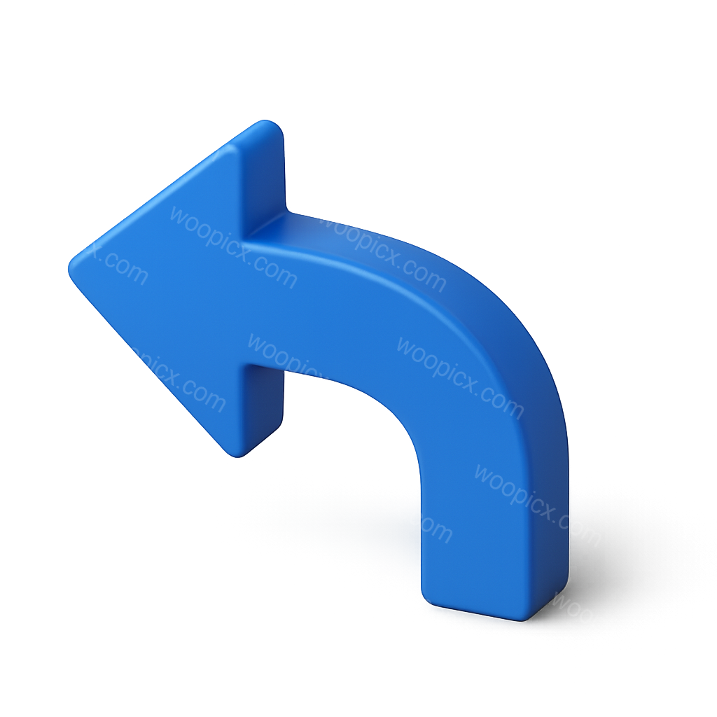 A visually striking 3D icon of a leftward bent arrow, designed with a blue color and a glossy finish. The icon features a three-quarter view, emphasizing its volumetric shape against a neutral background.