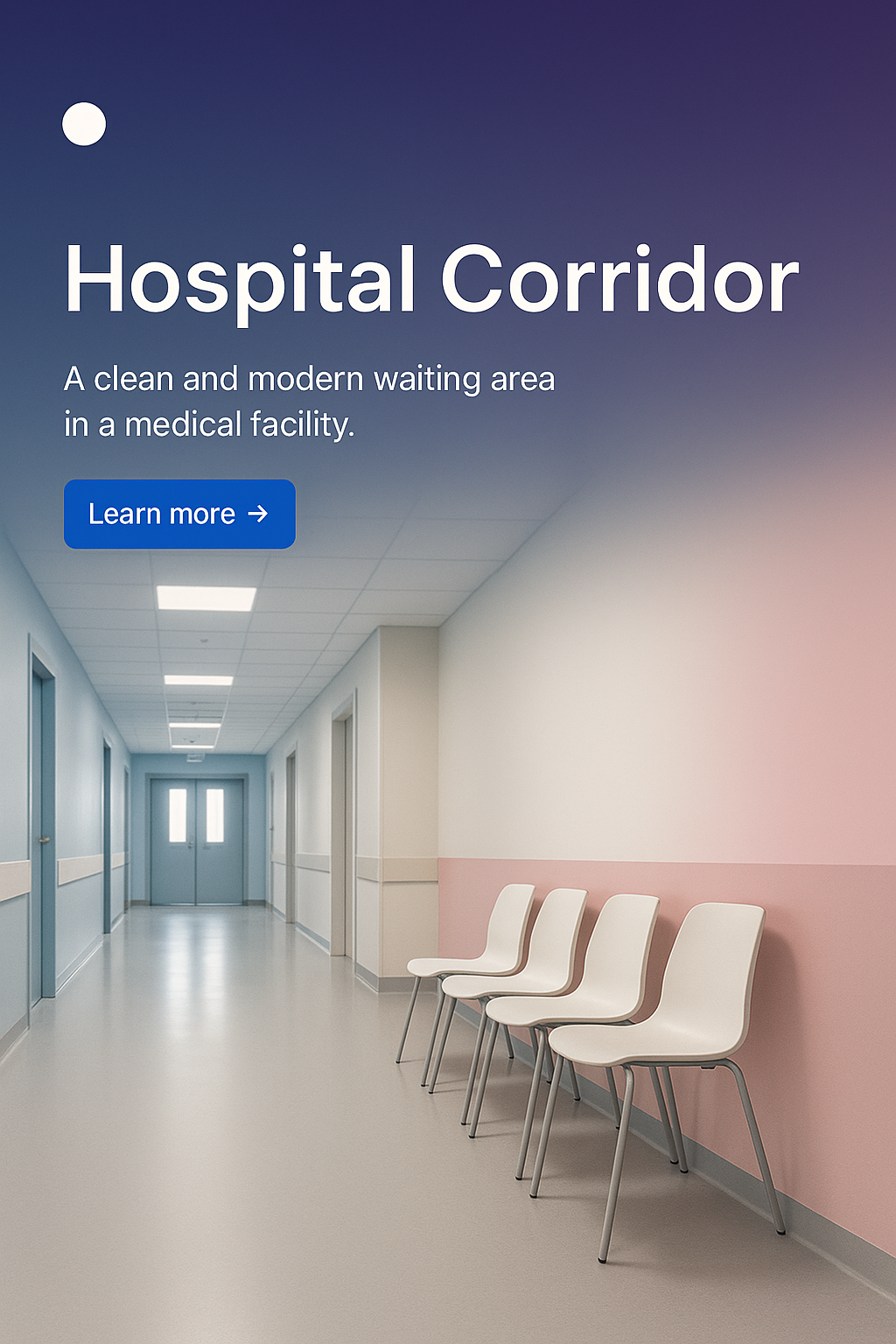 /Collection: /by davooda/Type: PNG/An empty, contemporary hospital corridor featuring white chairs for patients. The hallway is designed with a pastel color scheme, providing a clean and inviting atmosphere.