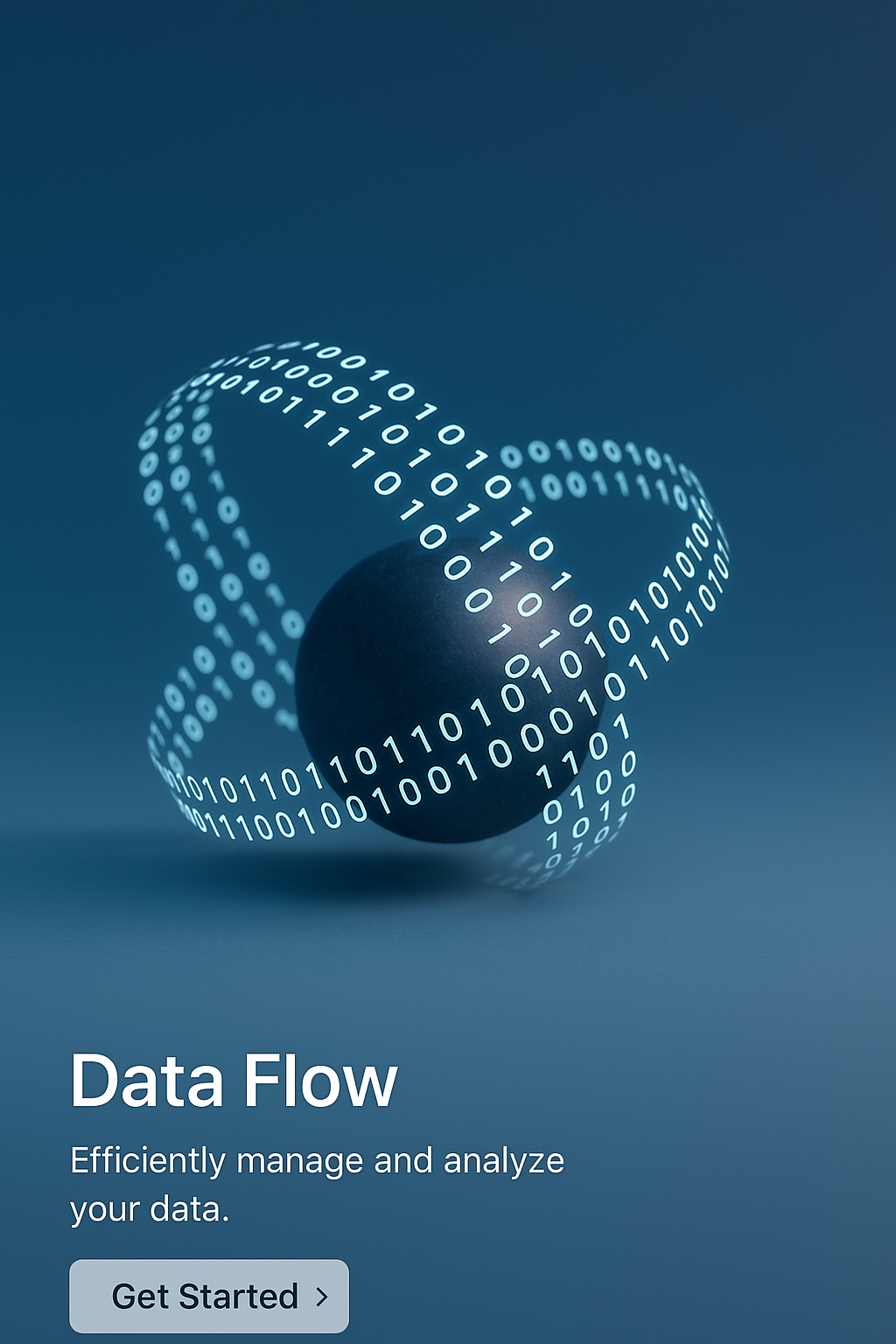/Collection: /by davooda/Type: PNG/A 3D scene depicting a dark sphere surrounded by swirling binary code. The background features a smooth gradient transitioning from dark to light, creating a modern and sleek look. A small label and action button are present, promoting data management.