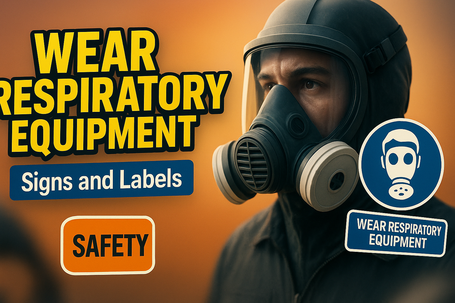 /Collection: /by davooda/Type: PNG/Informative graphic promoting the use of respiratory equipment, featuring a clear visual of a person in a gas mask against a gradient background, ideal for safety training and workplace awareness.