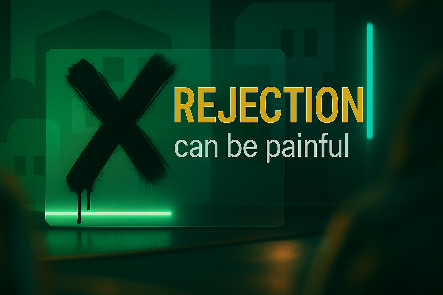 /Collection: /by Sergey Leonov/Type: PNG/A visually striking graphic depicting the theme of rejection, featuring bold typography and neon lighting elements. Ideal for social media posts or mental health discussions.