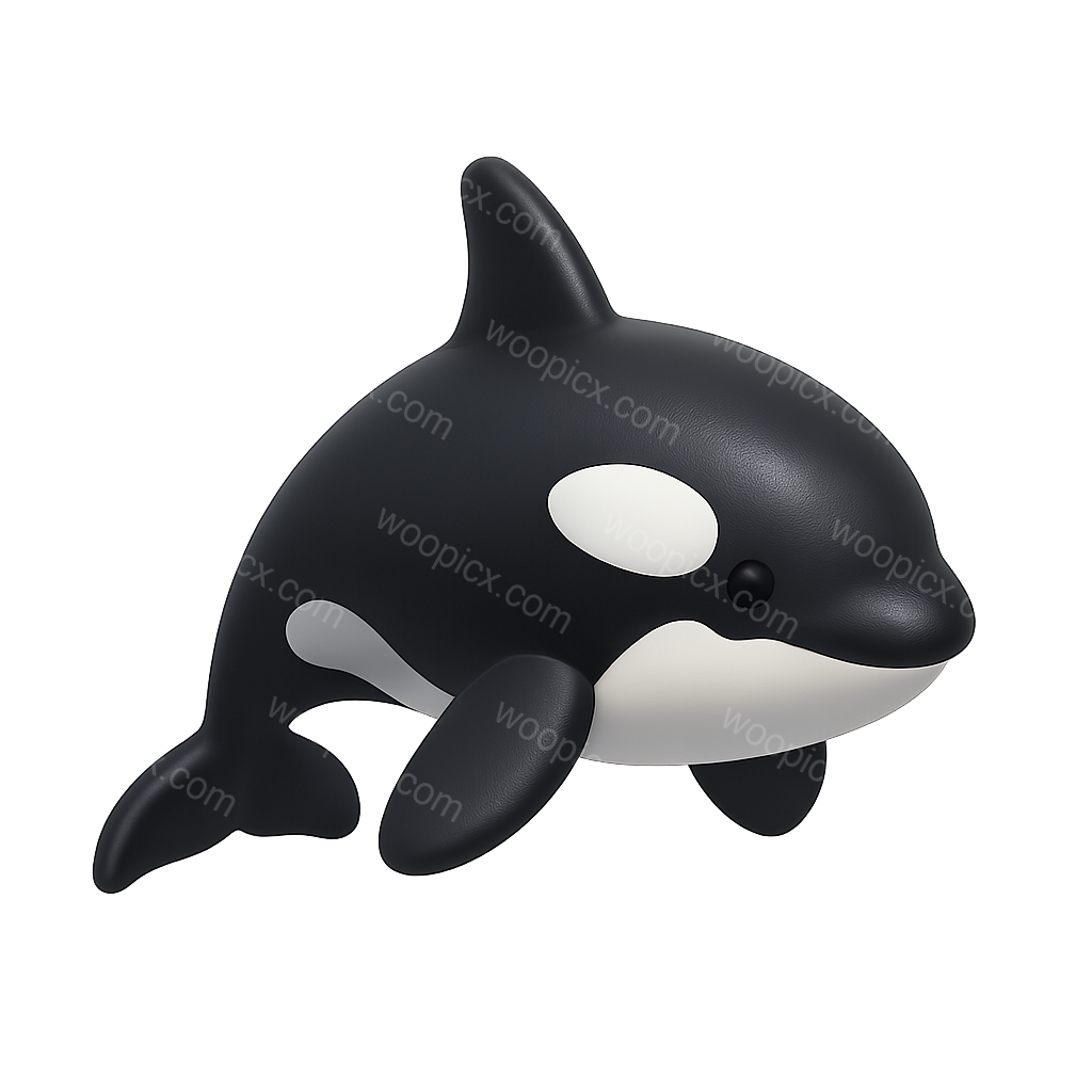 A sleek and modern 3D icon of an orca killer whale, designed with a transparent background. The orca is presented in a three-quarter view, showcasing a smooth, volumetric design.