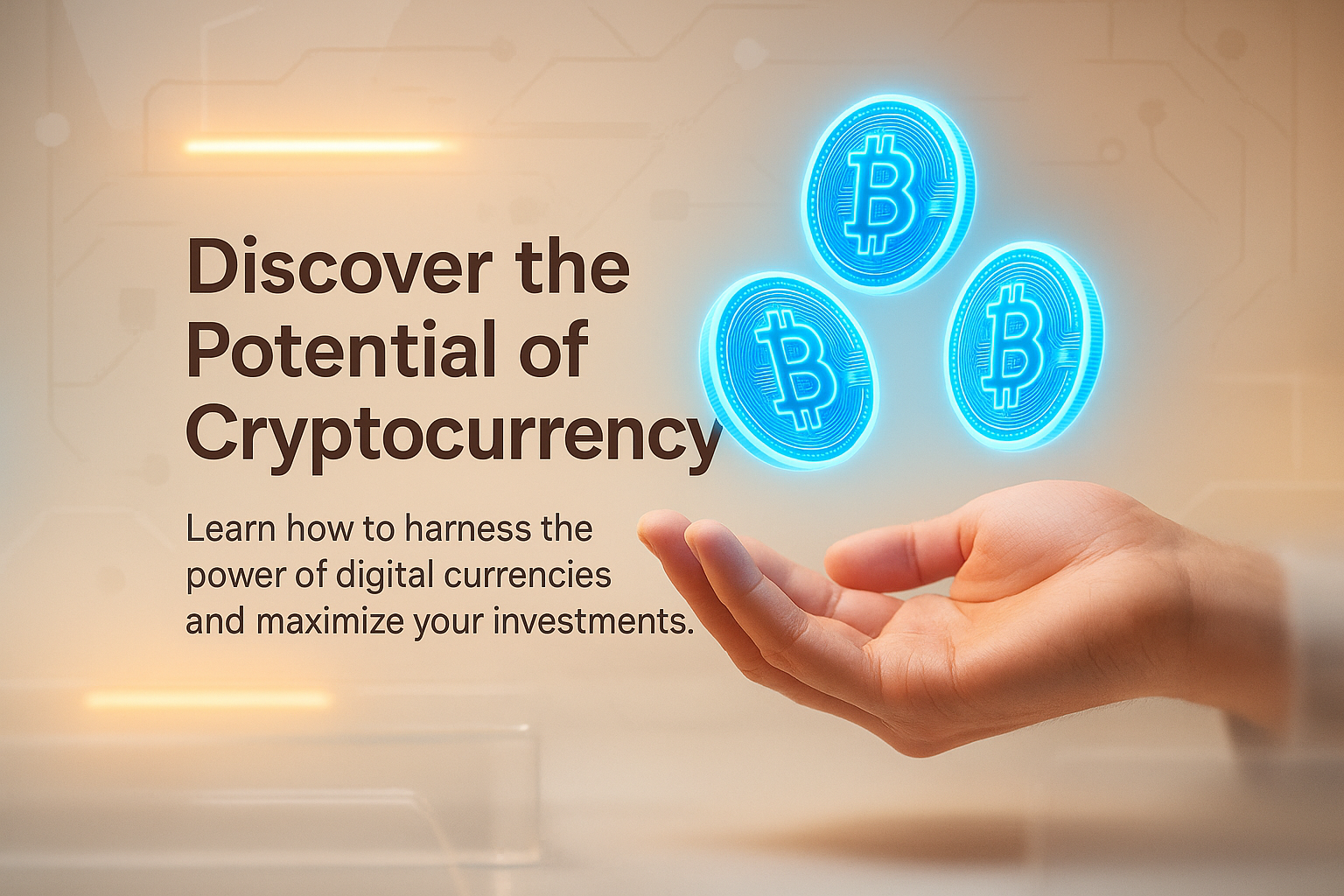 /Collection: /by davooda/Type: PNG/Informative graphic showcasing a hand presenting digital currency coins, designed to attract interest in cryptocurrency investment courses. Ideal for financial education marketing.