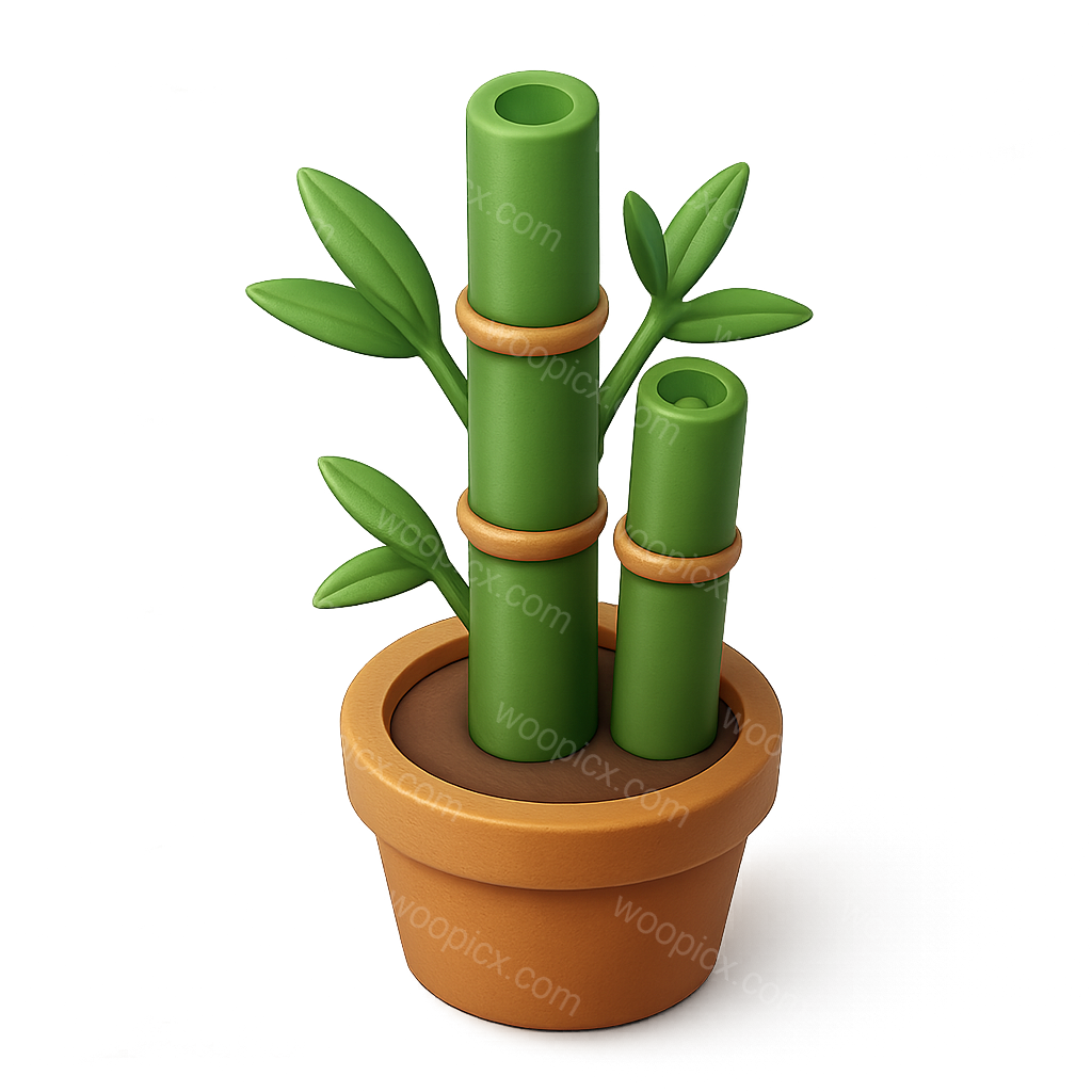 Stylized 3D Bamboo Icon in a Pot with Greenery